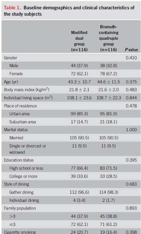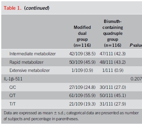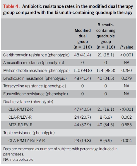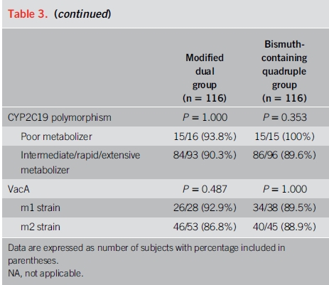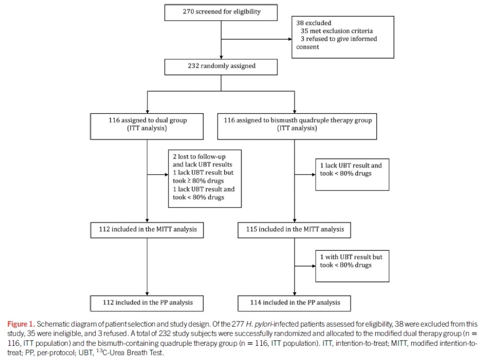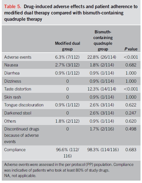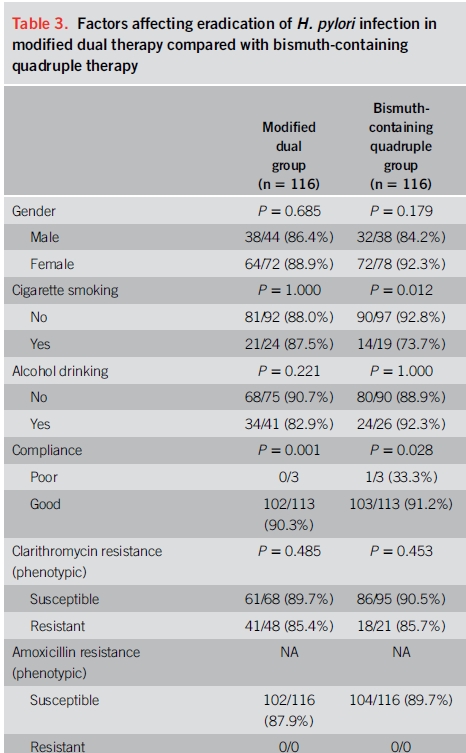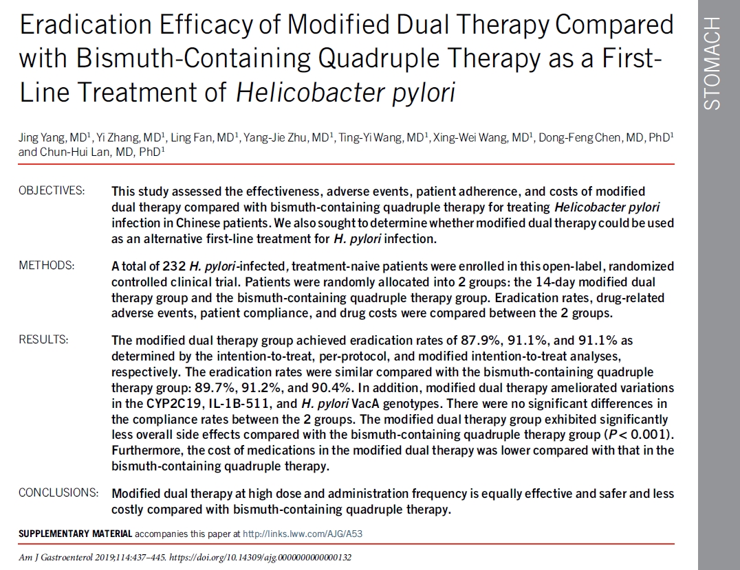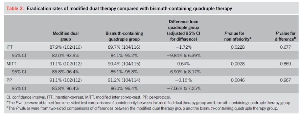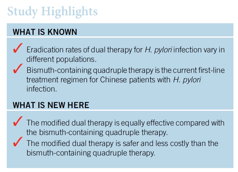 2. 중국에서 시행된 최근 무작위 연구에서 bismuth quadruple 치료와 비교하였을 때 치료율은 비슷하였습니다.