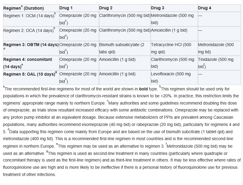 Algorithm for the management of Helicobacter pylori infection. *Note that either the urea breath test or the stool antigen test can be used in this algorithm. Occasionally, endoscopy and a biopsy-based test are used instead of either of these tests in follow-up after treatment. The main indication for these invasive tests is gastric ulceration; in this condition, as opposed to duodenal ulceration, it is important to check healing and to exclude underlying gastric adenocarcinoma. However, even in this situation, patients undergoing endoscopy may still be receiving proton pump inhibitor therapy, which precludes H. pylori testing. Thus, a urea breath test or a stool antigen test is still required at a suitable interval after the end of therapy to determine whether treatment has been successful (see text). †Some authorities use empirical third-line regimens, of which several have been described