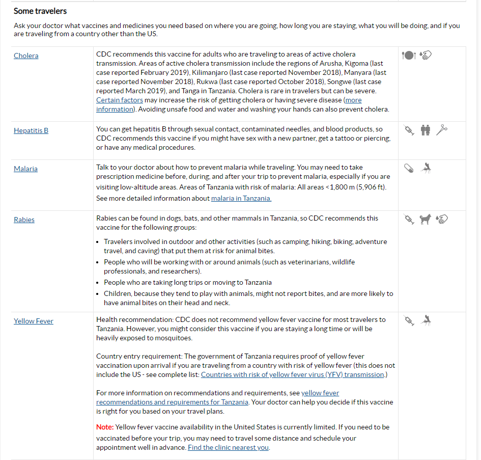 확인하는 방법은 구글에서 '나라 이름, CDC, malaria'라고 치면 해당 나라 여행 전에 필요한 예방접종이 나옵니다.