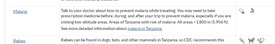 저는 '나라 이름, CDC, prevention' 이렇게 검색하기도 하고 '나라 이름, CDC, malaria' 검색하기도 합니다.
