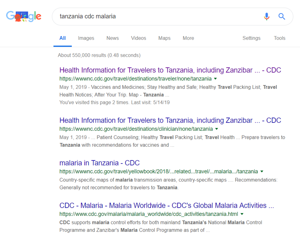 구글에서 tanzania cdc malaria를 치면 CDC 사이트가 검색됩니다.