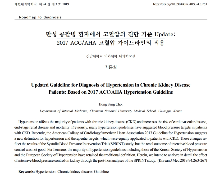이는 1988년 the Joint National Committee 4 (JNC4) 가이드라인 이후 약 30년 만의 변화이며, 특히 만성 콩팥병을 포함한 대부분의 질환군에서도 동일한 진단 기준이 적용되었다는 점에서 주목할 만하다.