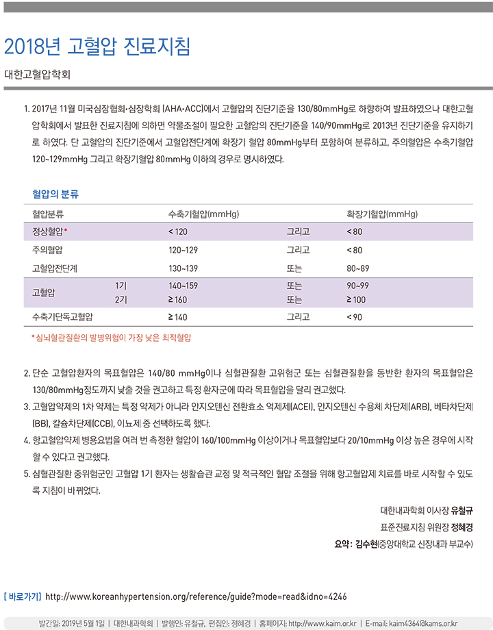 2018 고혈압 진료지침 [대한내과학회]
