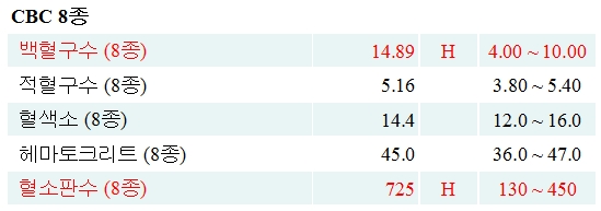 Acute pyelonephritis로 내원한 환자의 혈액검사 결과입니다.