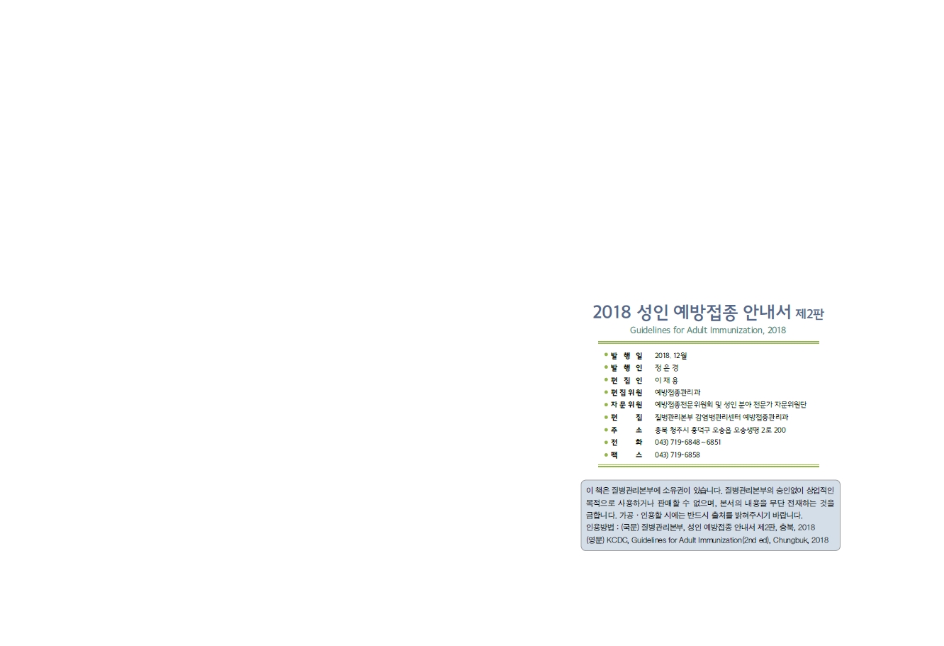 | 성인 예방접종 안내서 제2판 2018 [주요 개정 사항] (0) | 2019.10.24 |