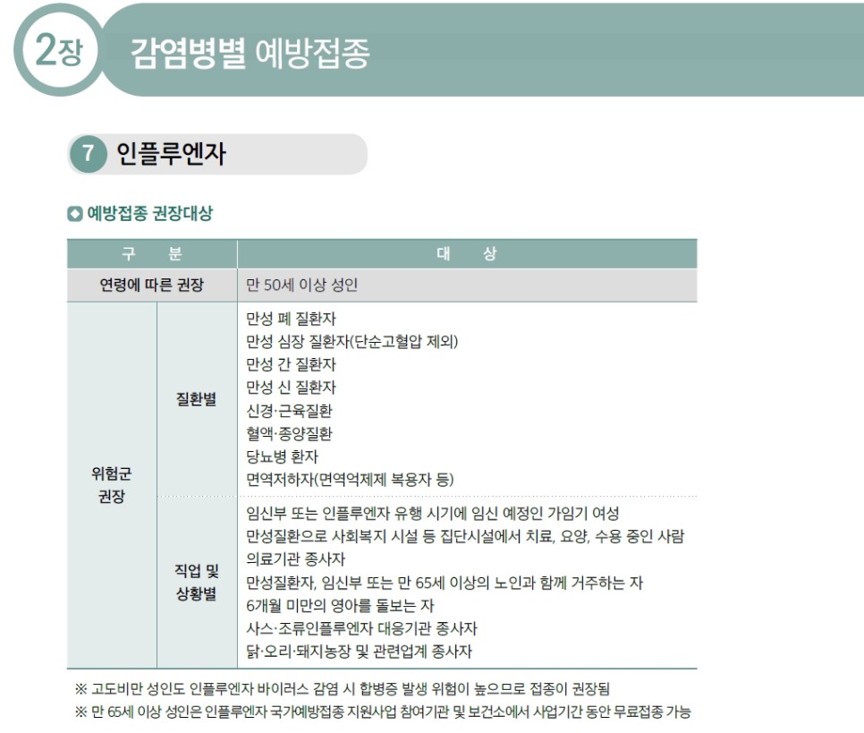 1. 기존 안내서에서는 모든 성인에서 일반 권장하였으나 2018년도 안내서에서는 연령에 따른 권장을 만 50세 이상으로 하였고 질환별, 직업 및 상황별 권장을 따로 두었습니다. UpToDate2019.10.25에도 비슷한 내용이 언급되어 있습니다.
