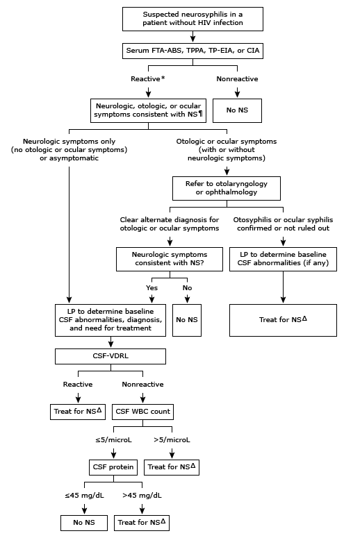 Algorithm for diagnosis of neurosyphilis in a patient without HIV infection