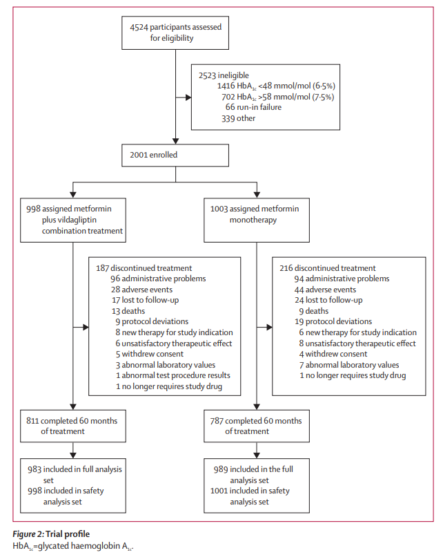 Glycaemic durability of an early combination therapy with vildagliptin and metformin versus sequential metformin monotherapy in newly diagnosed type 2 diabetes (VERIFY): a 5-year, multicentre, randomised, double-blind trial