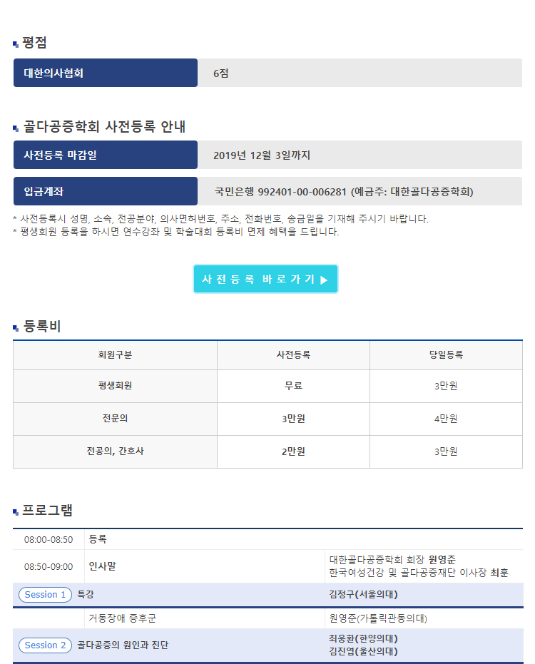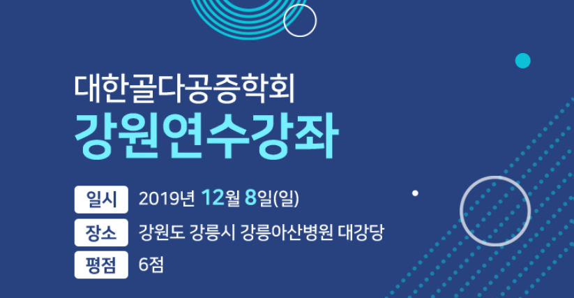 내분비내과/골다공증 대한골다공증학회 강원연수강좌 2019.12.08 세균맨 2019. 11. 30. 15:13 728x90 반응형 대한골다공증학회 강원연수강좌 2019.12.08 728x90 반응형 공유하기 게시글 관리 Internal Medicine Since 2012. 세균맨 저작자표시 비영리 변경금지 (새창열림) '내분비내과 > 골다공증' 카테고리의 다른 글 골밀도 측정 방법, Interpretation of dual-energy x-ray absorptiometry (DXA) in evaluating osteoporosis (0) 2020.07.11 폐경 전 여성과 50세 이하의 남성의 골밀도 해석 (0) 2020.07.05 골밀도 검사의 실제: Dual-Energy X-ray Absorptiometry (DXA) 중심으로[대한내과학회지: 제 94 권 제 3 호 2019] (0) 2019.06.16 골다공증 남성에서 비스포스포네이트 주사, IV bisphosphonates in men with osteoporosis (0) 2019.04.25 남성 골다공증에서 경구 비스포스포네이트, Oral bisphosphonates in men with osteoporosis (0) 2019.04.25 '내분비내과/골다공증' Related Articles 골밀도 측정 방법, Interpretation of dual-energy x-ray absorptiometry (DXA) in evaluating osteoporosis 폐경 전 여성과 50세 이하의 남성의 골밀도 해석 골밀도 검사의 실제: Dual-Energy X-ray Absorptiometry (DXA) 중심으로[대한내과학회지: 제 94 권 제 3 호 2019] 골다공증 남성에서 비스포스포네이트 주사, IV bisphosphonates in men with osteoporosis