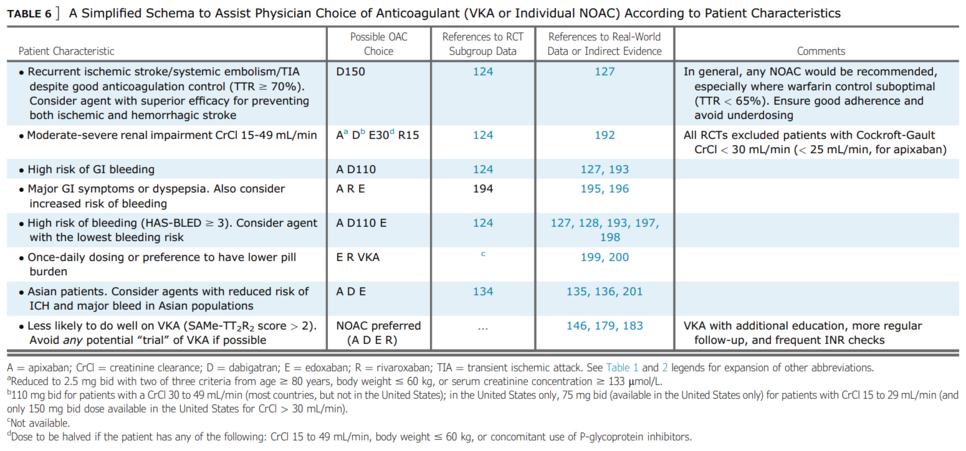 1. 좋은 항응고 조절(TTR ≥ 70%)에도 불구하고 재발성 허혈성 뇌졸중, 전신색전증, TIA가 있는 경우. 허혈성과 출혈성 뇌졸중 모두를 예방하는데 효과가 우수한 약제를 선택할 것.