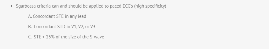 이 Sgarbossa criteria는 pacemaker ECG에서 AMI 진단에 이용됩니다. 그러나 pacemake의 경우에는 Sgarbossa criteria C가 가장 특이적입니다.