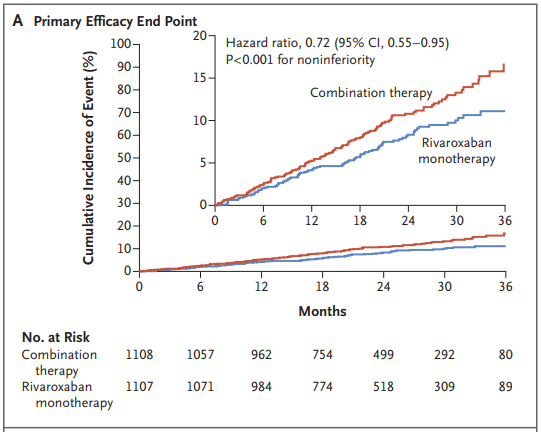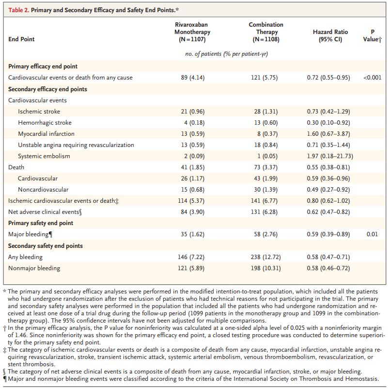 모든 이 시험들은 모두 2가지 항혈전제가(OAC + SAPT) 삼중치료만큼 적어도 효과적이고 출혈 위험 감소와 관련이 있었다는 내용입니다.