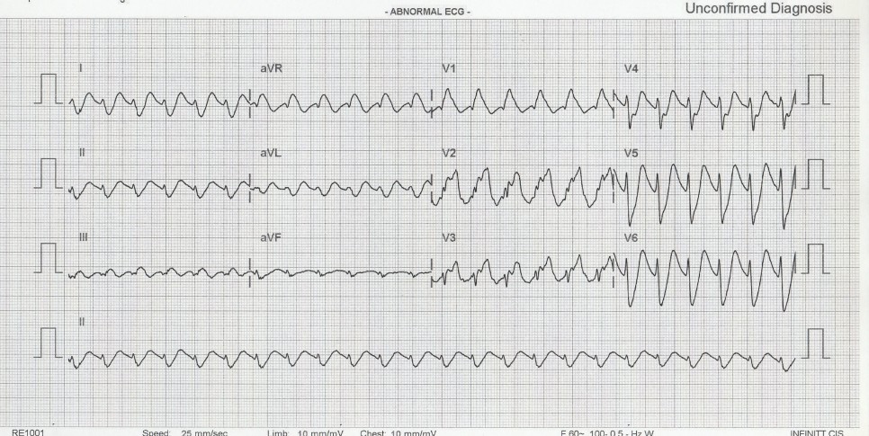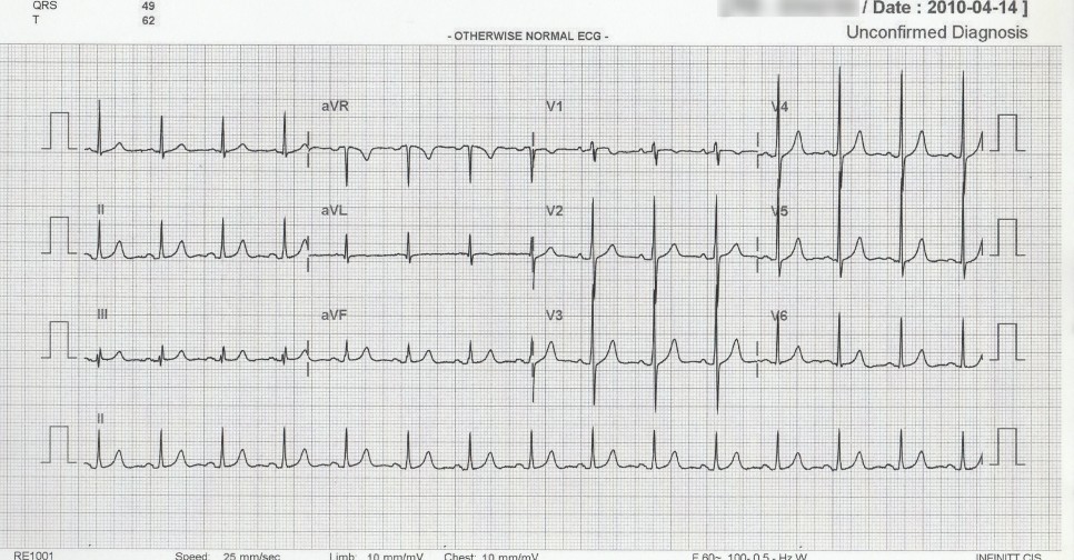 다음 심전도는 2010년 레지던트 2년차일 때 경험하였던 케이스 중의 하나입니다.