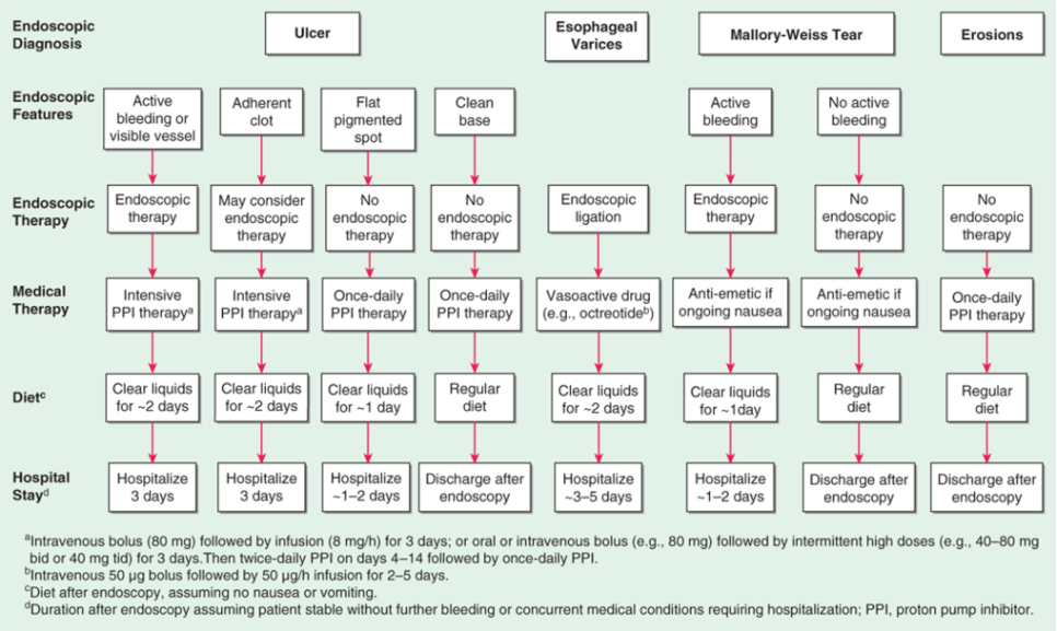 Suggested algorithm for patients with acute upper gastrointestinal bleeding based on endoscopic findings.