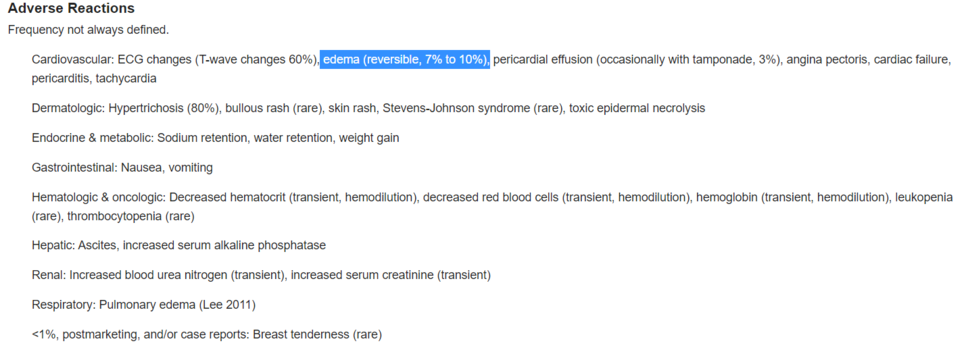두 번째는 minoxidl에 의한 부종