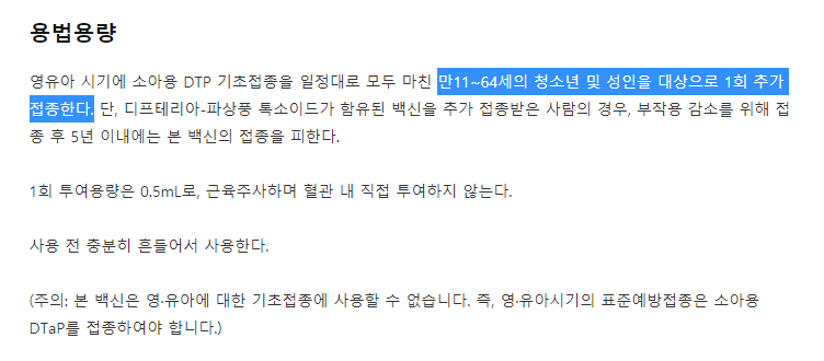 티댑(아다셀, 부스트릭스), 승인 용량과 나이에 대해 이전에 올린 블로그입니다.