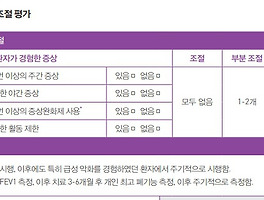 최근 1년간 급성 악화 경험이 있었던 환자에서는 저용량 흡입 스테로이드제/포모테롤 복합제를 질병조절제와 증상완화제로 동시에 사용하는 것이 같은 용량의 흡입 스테로이드제/지속성 베타2 항진제 복합제 또는 더 높은 용량의 흡입 스테로이드제 단독 사용보다 급성 악화의 예방에 더 효과적이다(근거수준 A).