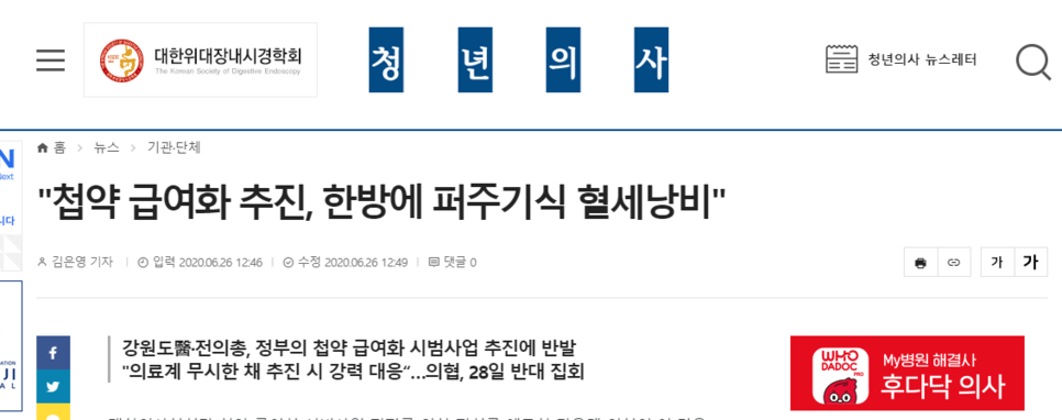 "첩약 급여화 추진, 한방에 퍼주기식 혈세낭비" - 청년의사