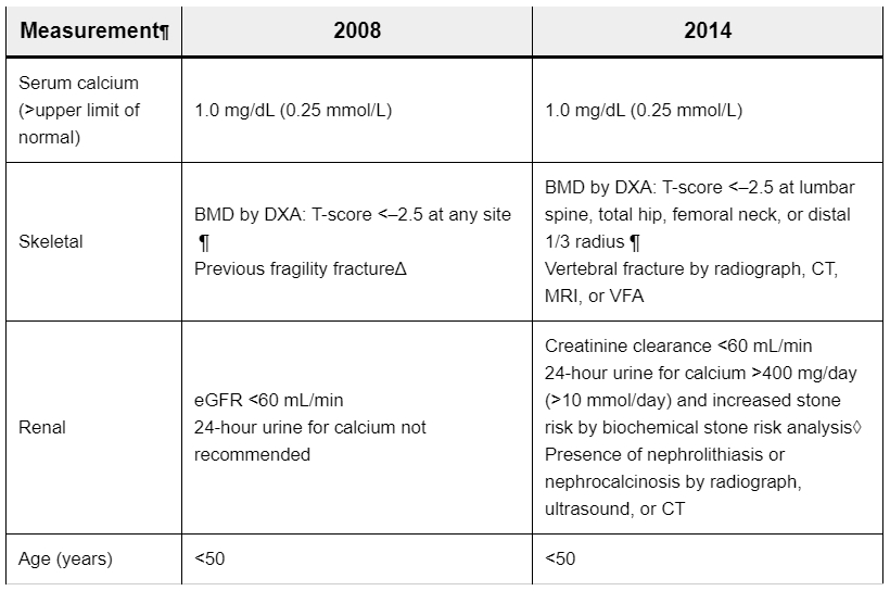 Guidelines for surgery in asymptomatic PHPT: A comparison of current guidelines with the previous one*