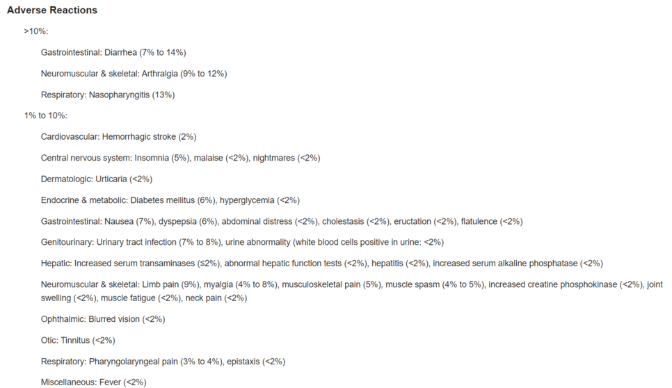 아토르바스타틴, 로슈바스타틴은 < 1 %, post-marketing and/or case report로 있었습니다.
