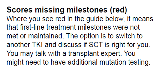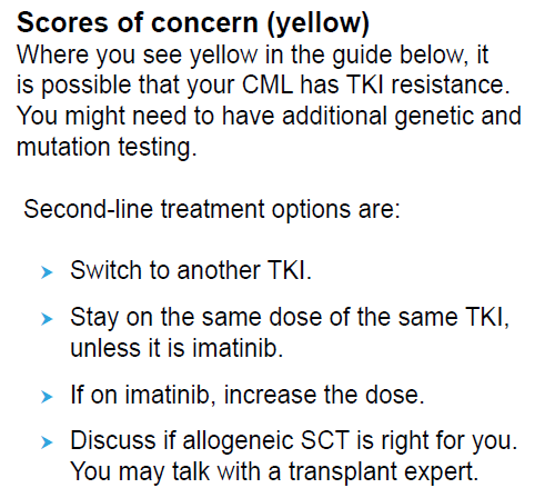 low risk인 경우에 선호되는 TKIs는 imatinib, bosutinib, dasatinib, nilotinib이고 intermediate-, high risk group인 경우는 bosutinib, dasatinib, nilotinib입니다.