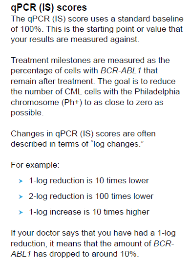 : BCR-ABL1이 3개월, 6개월째에 1 ~10 %