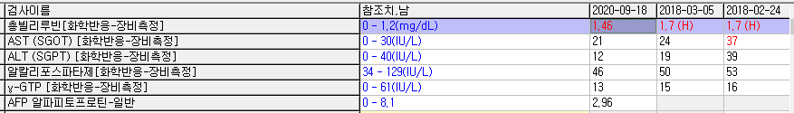 이번에는 지난 번보다 오히려 총빌리루빈 수치가 낮았습니다.