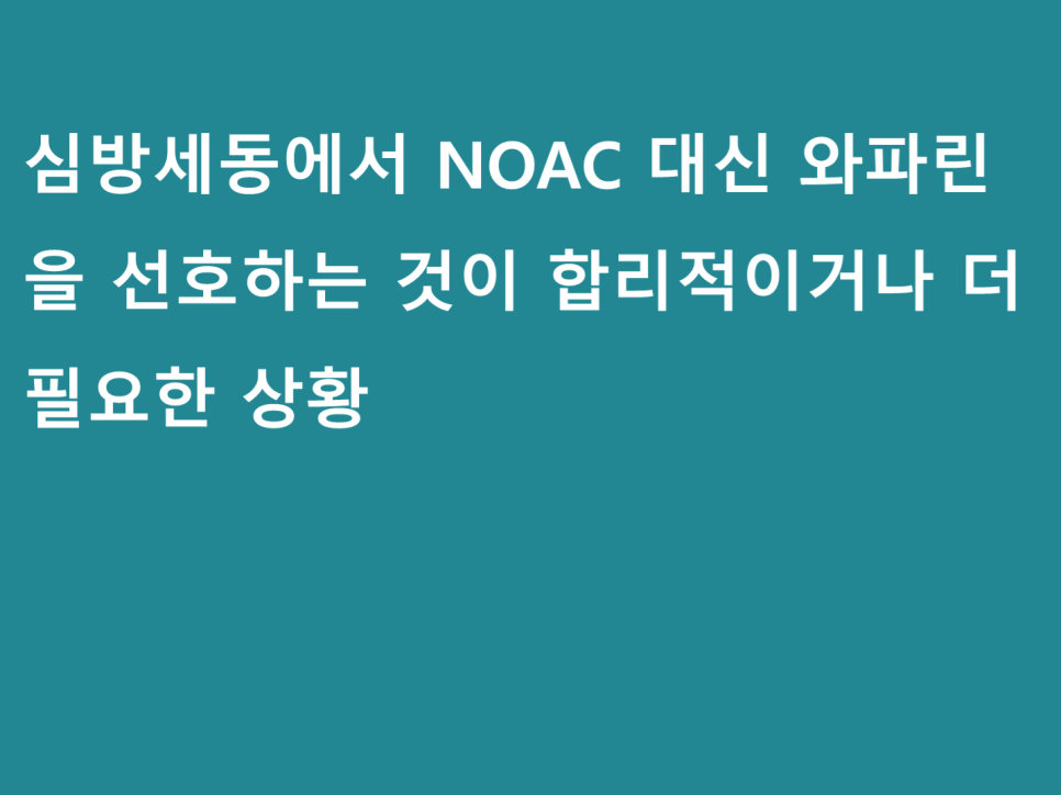 ㉮ 이미 와파린을 복용 중이고 정기적인 INR 측정에 불편함이 없고 치료 범위에서 잘 조절되는 환자