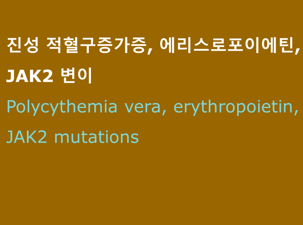 Polycythemia vera (PV) 환자들은 보통 낮은 혈청 erythropoietin (EPO) 농도를 갖습니다. 낮은 EPO 수치가 PV에 아주 특이적인 반면, 정상보다 높은 수치는 일반적이지 않고 secondary erythrocytosis를 시사하며 특이도 98 %입니다.
