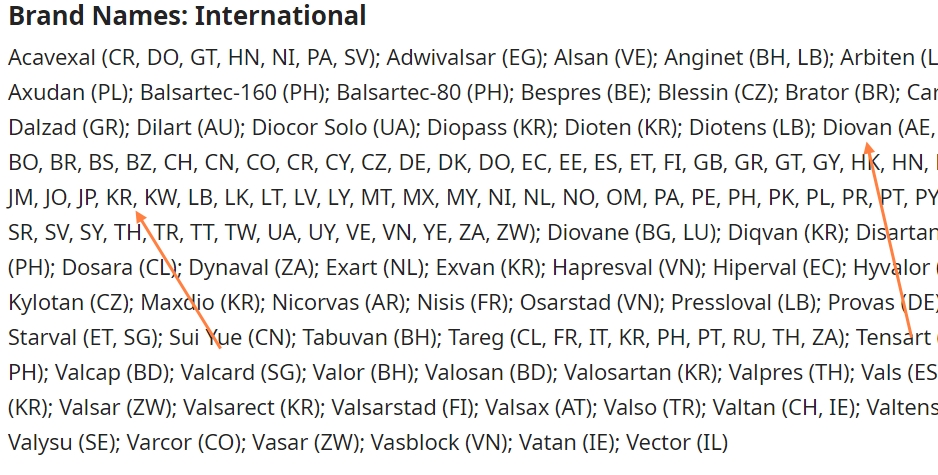디오반 (Diovan)은 발사르탄 (valsartan)의 미국 상품명이며 우리나라 상품명도 이와 같습니다.
