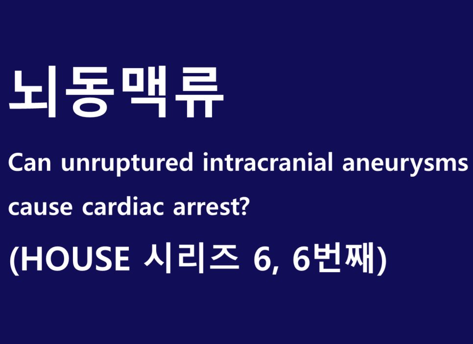 이 하우스 드라마 내용은 unruptured intracranial aneurysm이 cardiac arrest를 일으킬 수 있다는 내용입니다. 이것은 닥터 하우스가 설명한 내용이기도 하고 실제 드라마 환자도 쓰러졌다가 asystole로 확인된 후 다시 살아났습니다. Aneurysm rupture가 발생한 것은 아니었습니다.