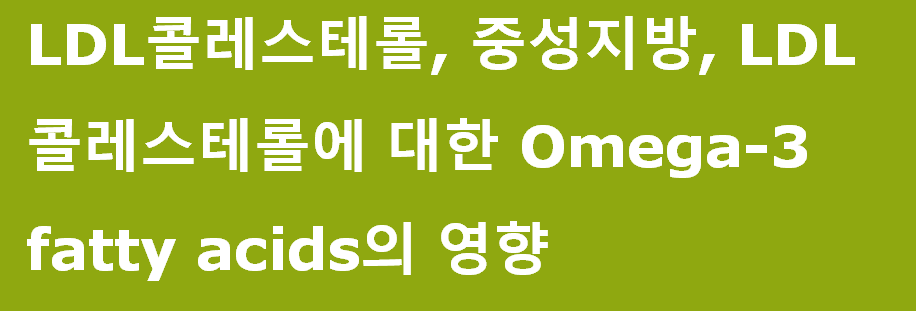 결과들이 비록 혼재되어 있고 복용한 오메가3 지방산의 원료와 구성에 의존하지만, 오메가3 지방산은 LDL 콜레스테롤와 HDL 콜레스테롤 수치에 영향을 줄 수 있습니다.