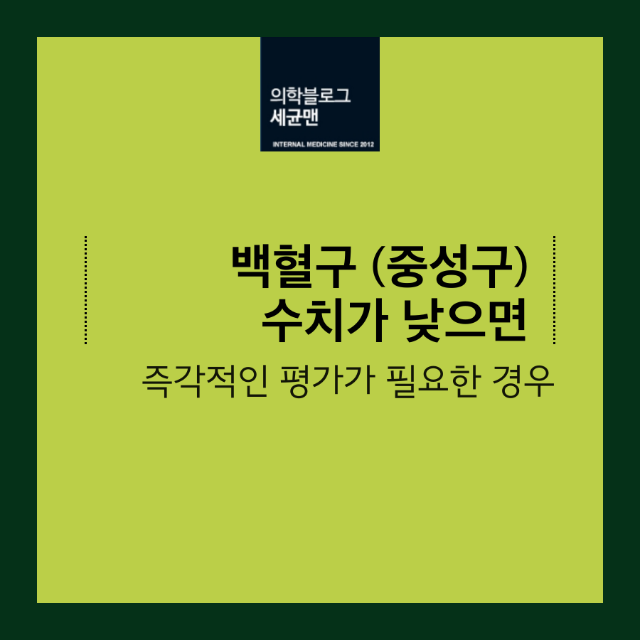 백혈구 (중성구, 호중구) 수치가 낮은 경우 긴급한 평가는 환자의 임상적 조건, 호중구 감소의 중증도, PBS에서 걱정스러운 소견의 존재입니다.