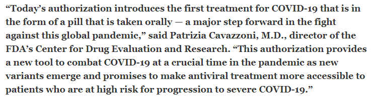 1. FDA COVID-19 Update : FDA Atuthorizes First Oral Antiviral for Treatment of COVID-19, December 22, 2021