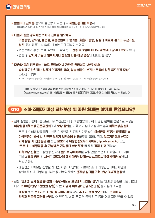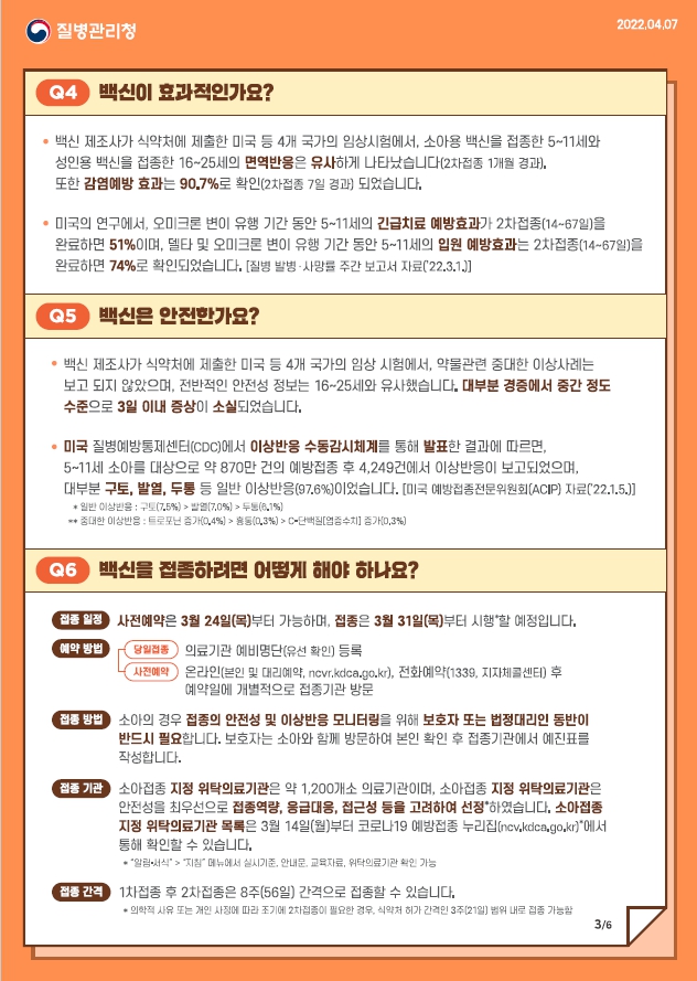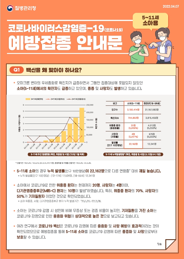 | 코로나19 예방접종 안내문 [5-11세 소아: 보호자용] (0) | 2022.04.30 |
