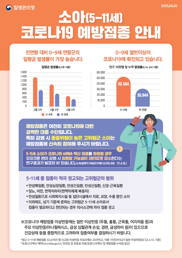 | 코로나19 예방접종 안내문 [5-11세 소아] (0) | 2022.04.30 |