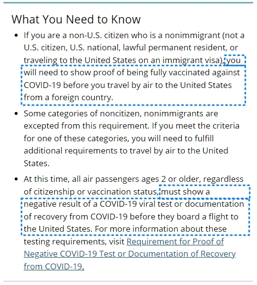2) COVID-19 바이러스 검사 음성 결과 또는 COVID-19 회복 문서를 제출해야 합니다.