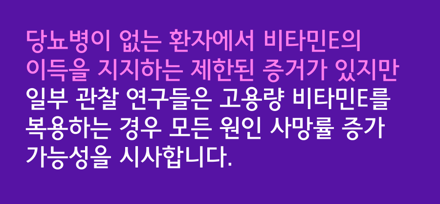 하루 400 IU 이상의 고용량 비타민E 보충제는 일관되지 않지만 모든 원인 사망률 증가와 연관되어 있습니다.