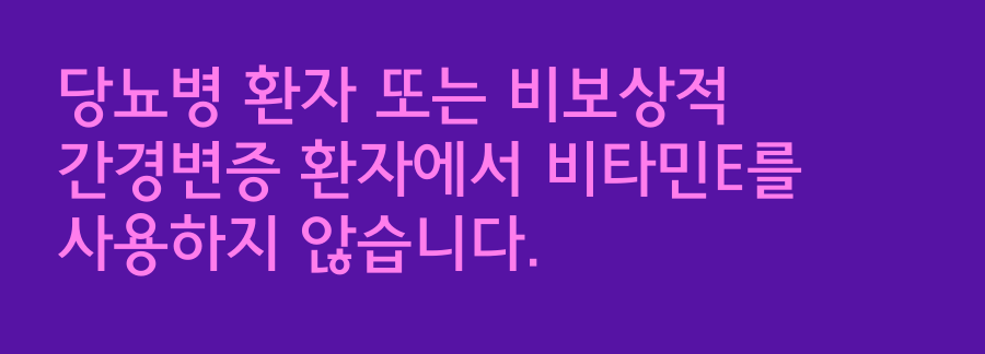 비타민E의 이득을 보였던 연구들은 당뇨병 환자 또는 비보상적 간경변증 환자들을 포함하지 않았기 때문에 이와 같은 환자들에서 비타민E를 사용하지 않습니다. 이것은 the American Association for the Study of Liver Diseases (AASLD) 권고사항과 일치합니다.