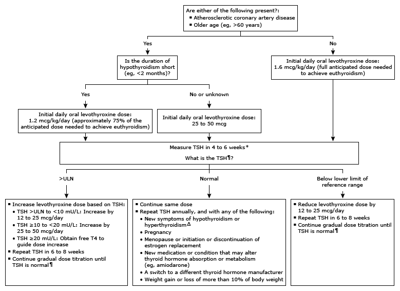 TSH: thyroid-stimulating hormone; ULN: upper limit of normal; T4: thyroxine.