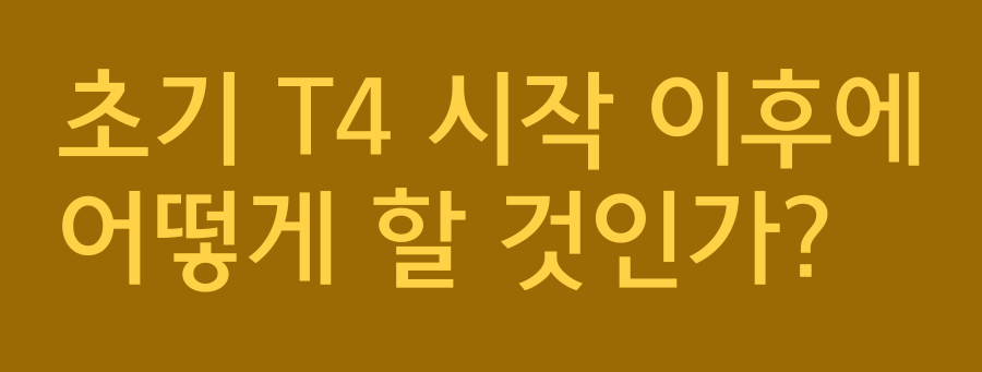 T4를 투약하면 증상 개선이 이루어지고 T4가 증가하기 시작합니다. 그러나 평가는 TSH로 합니다. TSH는 이후 감소하기 시작할텐데 4-6주에 검사를 합니다. 만일 여전히 TSH가 정상보다 높다면 T4 용량을 올립니다. 고령인 경우는 12-25 mcg씩 증량하고 젊은 사람인 경우에는 더 높은 용량도 가능하지만 그것에 대한 가늠은 초기 투약한 T4로 인해 얼마나 T4가 올라갔고 얼마나 TSH가 감소되었는지에 따라 달라집니다. 6주 후에 다시 TSH 검사를 하여 또 평가합니다.