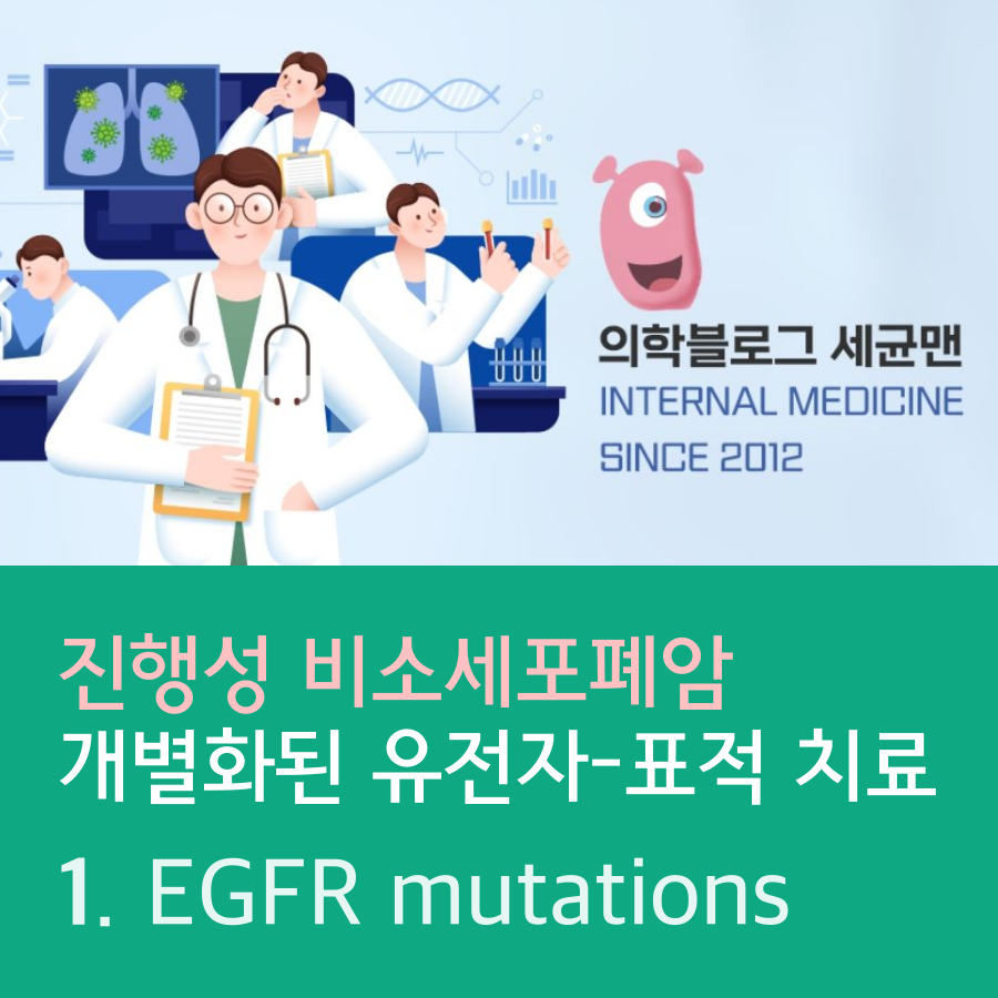 EGFR tyrosine kinase inhibitors (TKIs)는 platinum-based chemotherapy doublets과 비교하여 EGFR의 activating mutation을 포함하고 있는 진행성 NSCLC 환자의 결과를 유의하게 개선시킵니다.