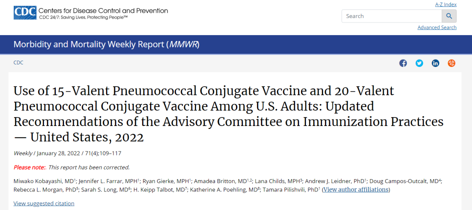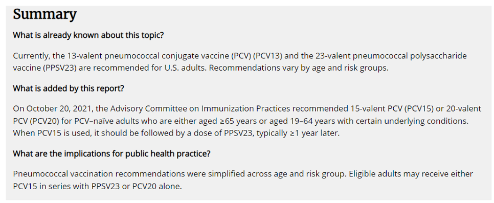 2022년 초, ACIP는 폐렴구균 백신에 대한 내용을 개정했습니다.