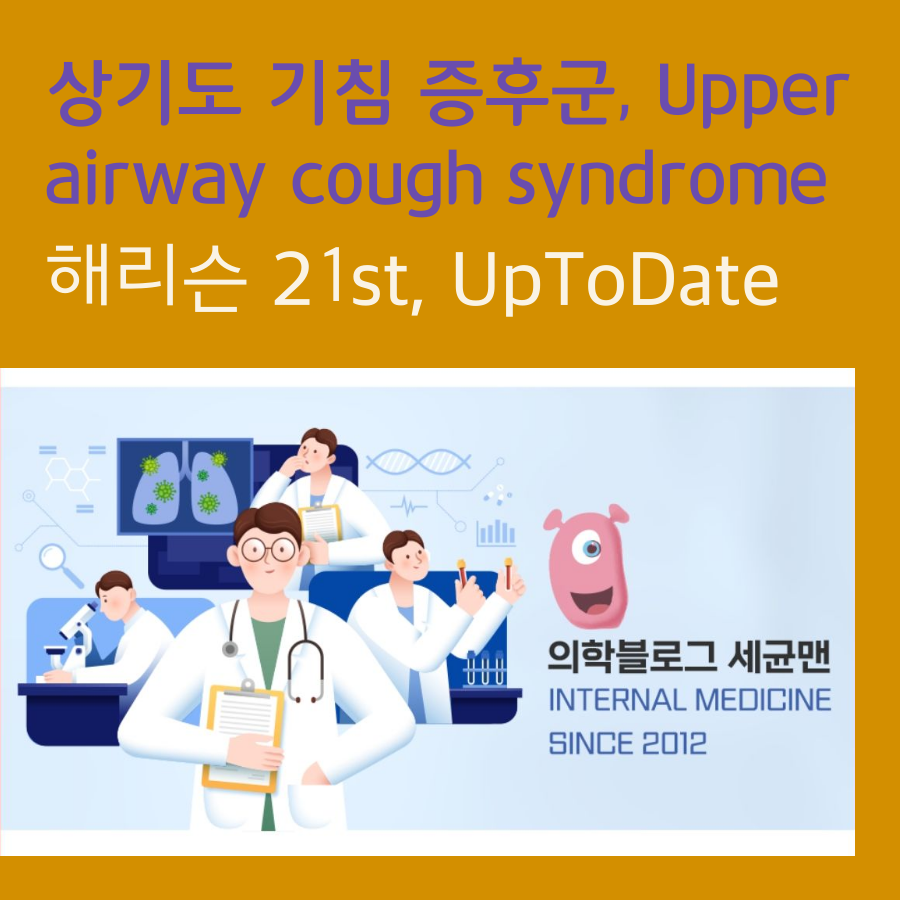 UpToDate 2022.11.27 Upper airway cough syndrome (UACS)을 이전에는 postnasal drip syndrome이라 불렀습니다. 그러나 기침과 관련된 모든 상기도 이상들을 포함한 UACS으로 개정되었습니다. 따라서 알레르기성, 비알레르기성, vasomotor rhinitis, 급성 비인두염, 부비동염을 포함한 여러 원인들을 포함한 명칭입니다. 이러한 것들이 기침을 왜 일으키기는지 잘 알려져 있지 않지만 한 가지 가능성은 UACS이 cough hypersensitiviy 환자에서 기침에 대한 trigger 역할을 한다는 것입니다.