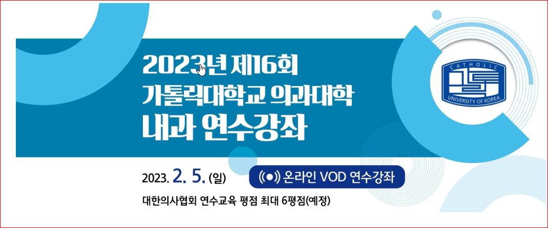 | ●2023.02.26● 제26회 내과전문의 평생교육 연수강좌 (0) | 2023.01.22 |