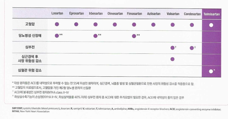 - 텔미트렌 : telmisartan : 20 mg, 40 mg, 80 mg ★20 mg 용량이 있음