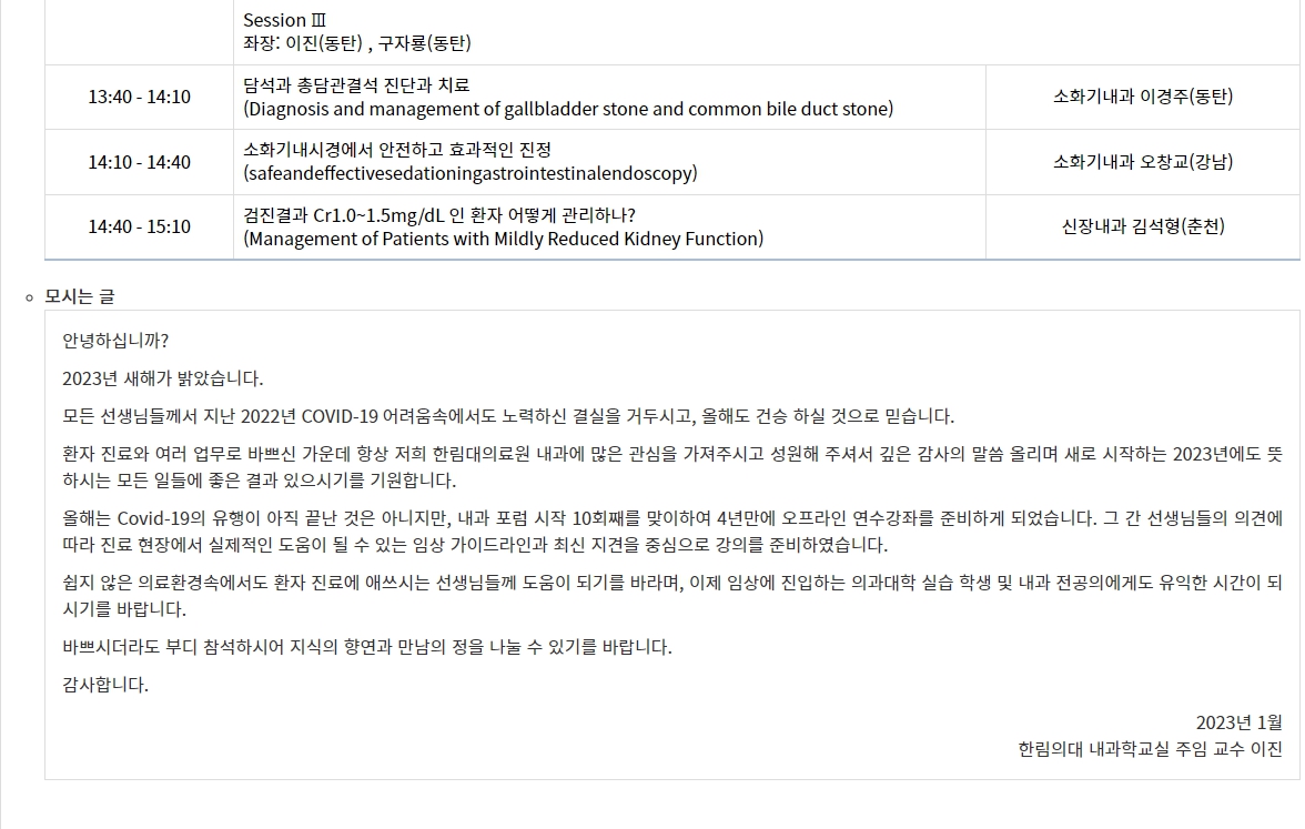 | ●2023.02.12● 제4회 대한소화기내시경학회·대한소화기학회 경기·인천지회 합동연수강좌 (1) | 2023.01.22 |