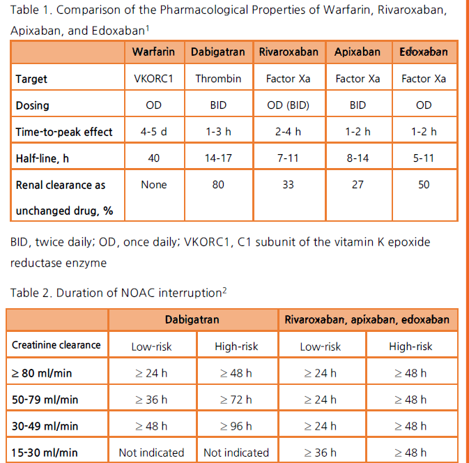 2. Apixaban, edoxaban, rivaroxaban을 복용 중인 경우 신기능 여부와 상관 없이 시술 전 2일, 시술 후 1일 (총 5일) 중단한다.
