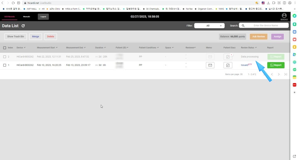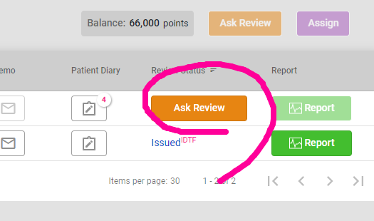 1번은 이전에 판독의뢰를 한 사람이어서 review status에 issued라고 되어 있으며