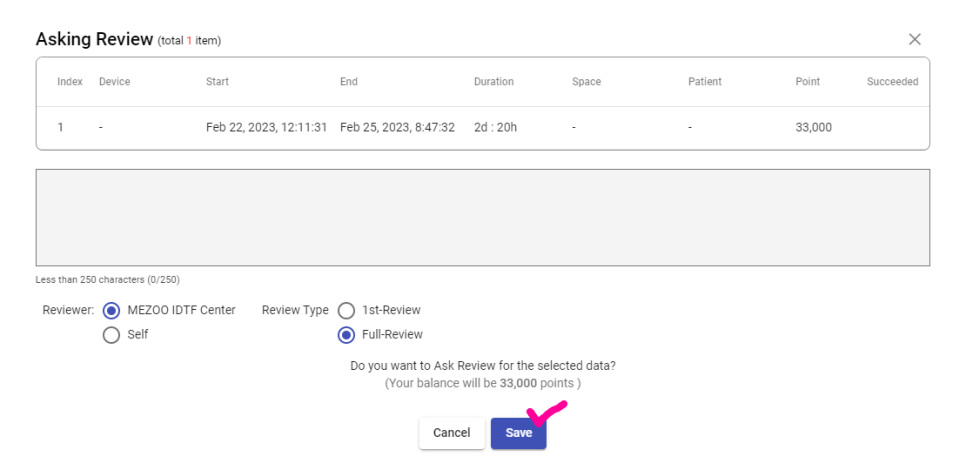 Full-Review 클릭하고 Save를 누르면 판독 신청이 끝납니다.
